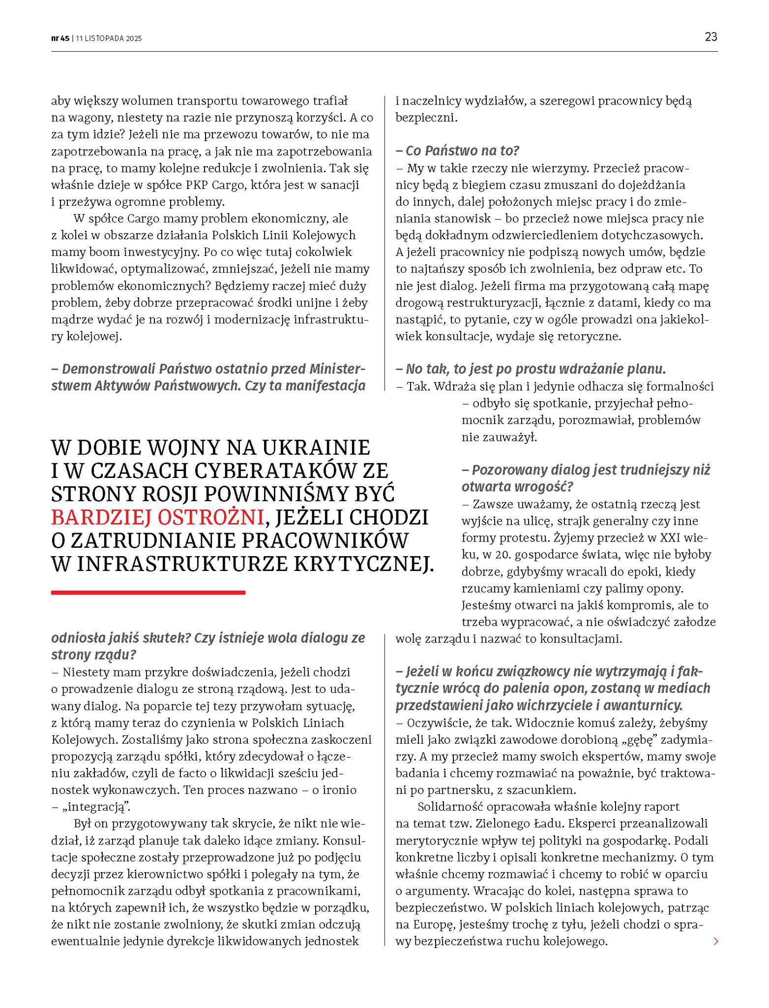 Zachęcamy do przeczytania wywiadu, który ukazał się na łamach Tygodnika Solidarność nr 45 (1918) z 11 listopada 2025 r. pt. "Suwerenność to także infrastruktura i transport".